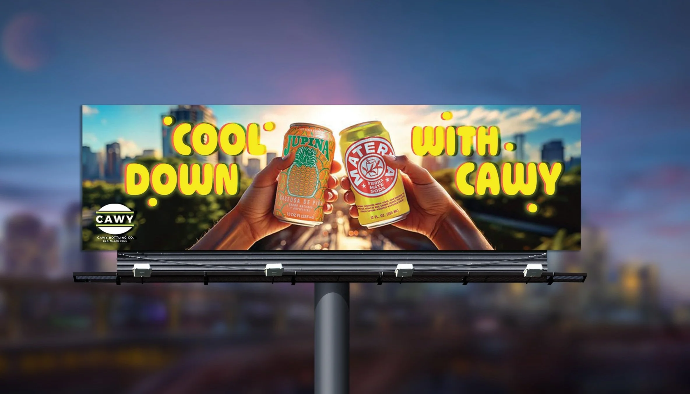 Cawy Bottling Co. is known for their popular Latin-inspired soft drinks. They wanted to launched a campaign to spotlight some of their fan-favorite beverages. Part of the campaign also included two unique designs to capture the vibrant Miami lifestyle. Designs were created using Illustrator, Firefly and Photoshop.